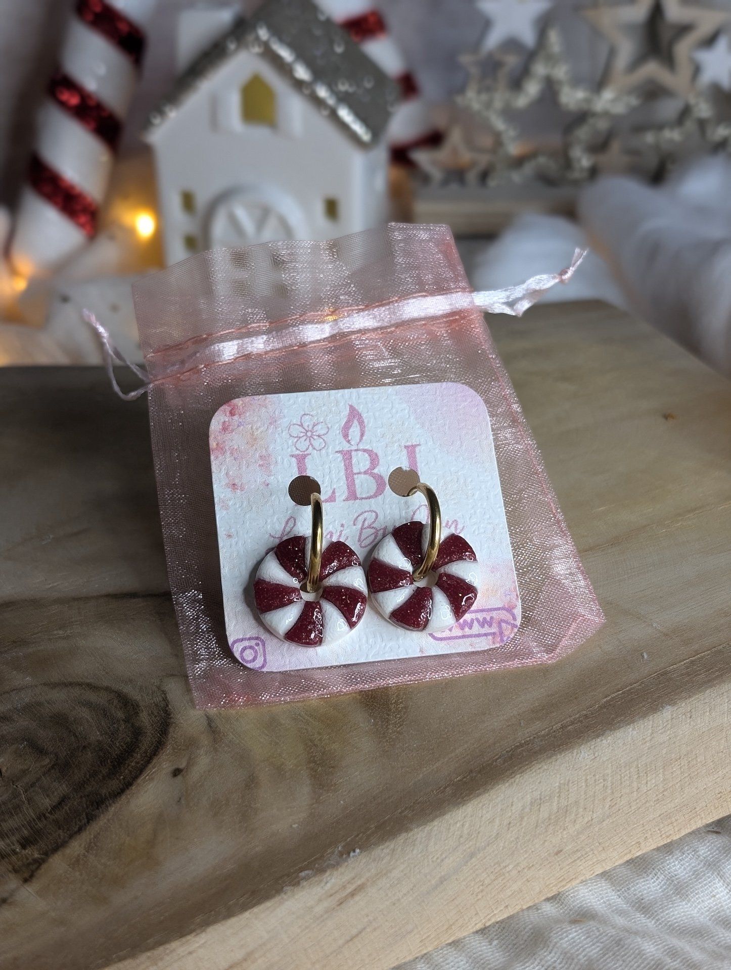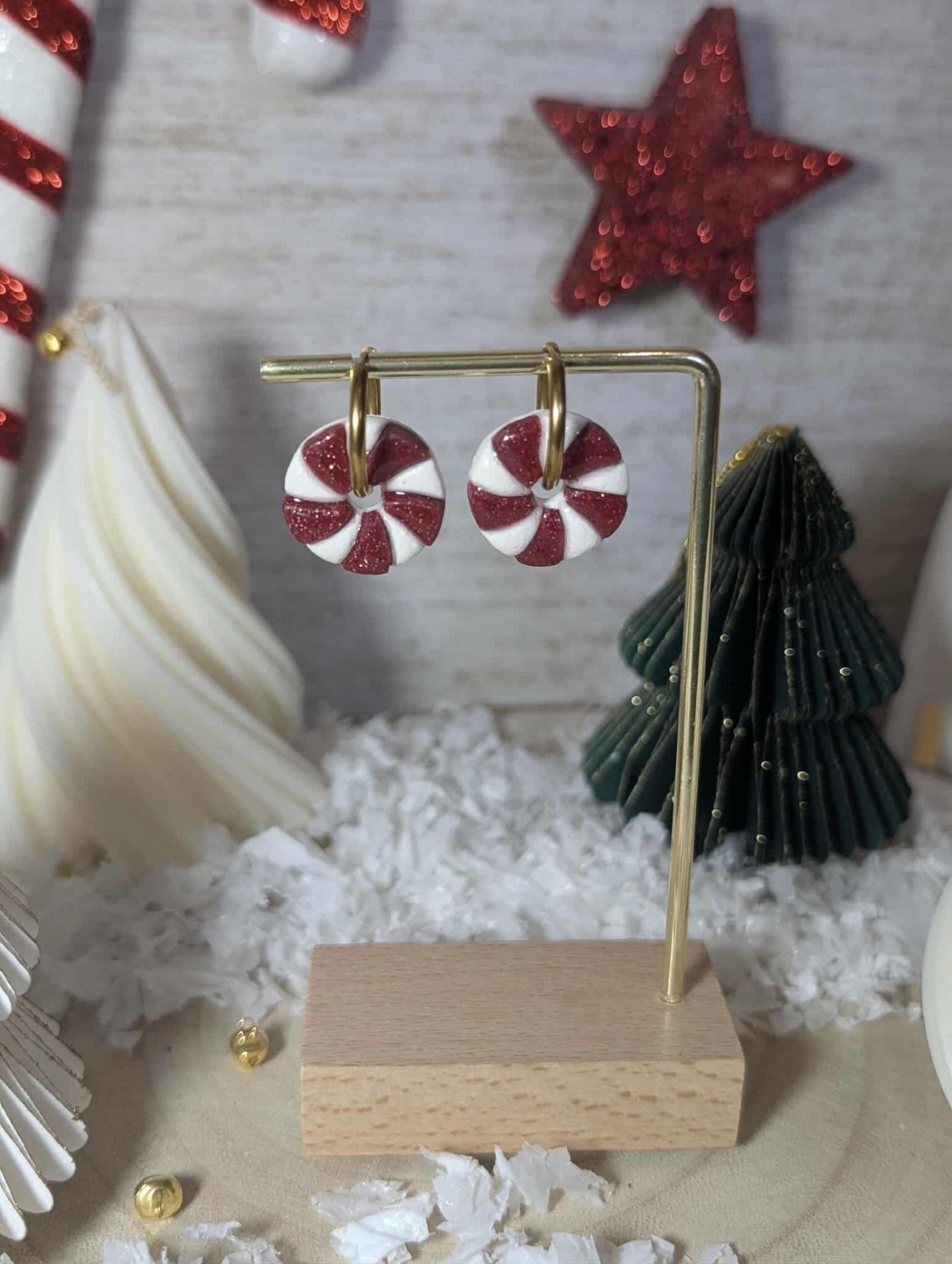 Boucles d'oreilles (pampilles) sucre d'orge en argile polymère avec finition en résine. (Taille env 2 cm)