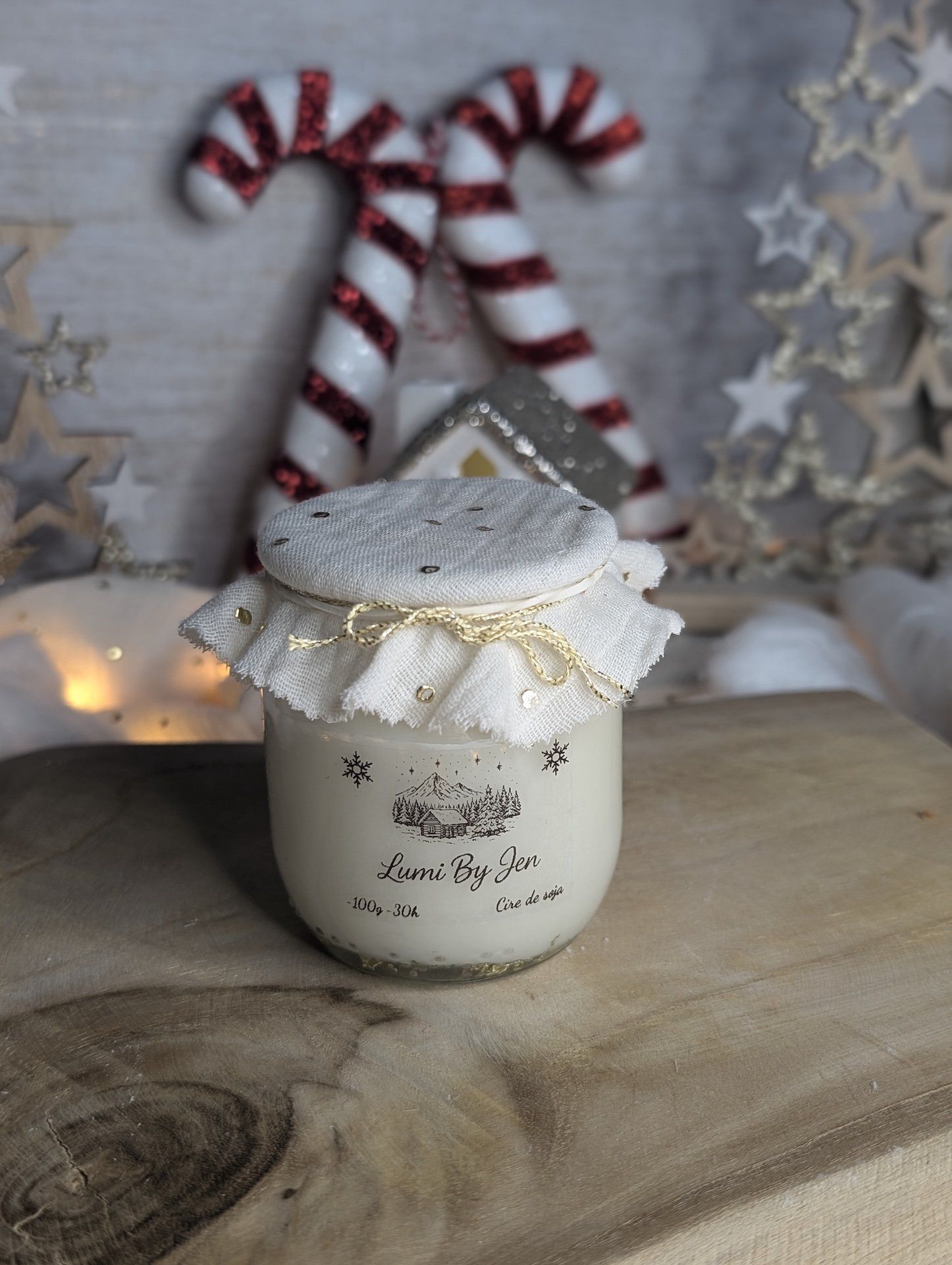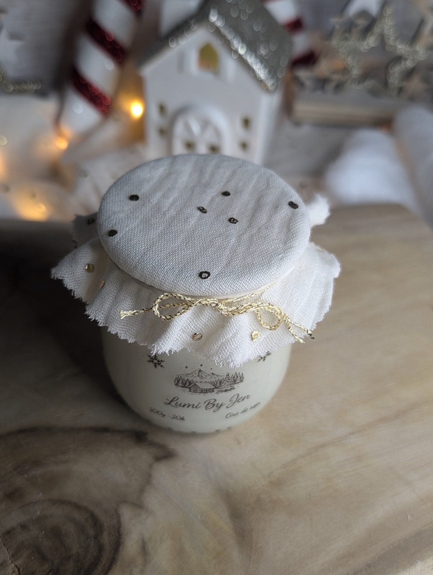 Un jolie tissu vient refermer la bougie qui change en fonction des saison (Tissu aléatoire).