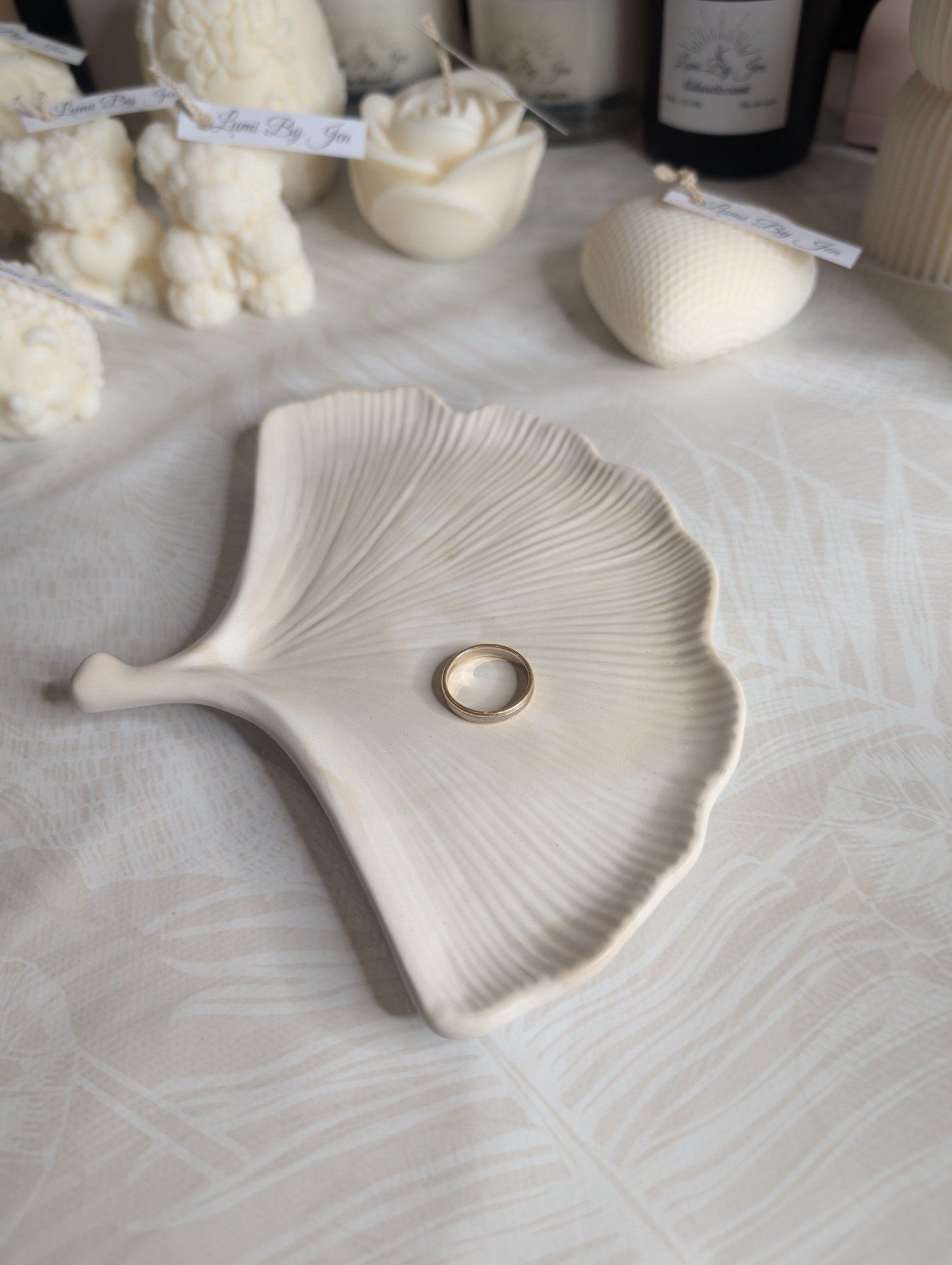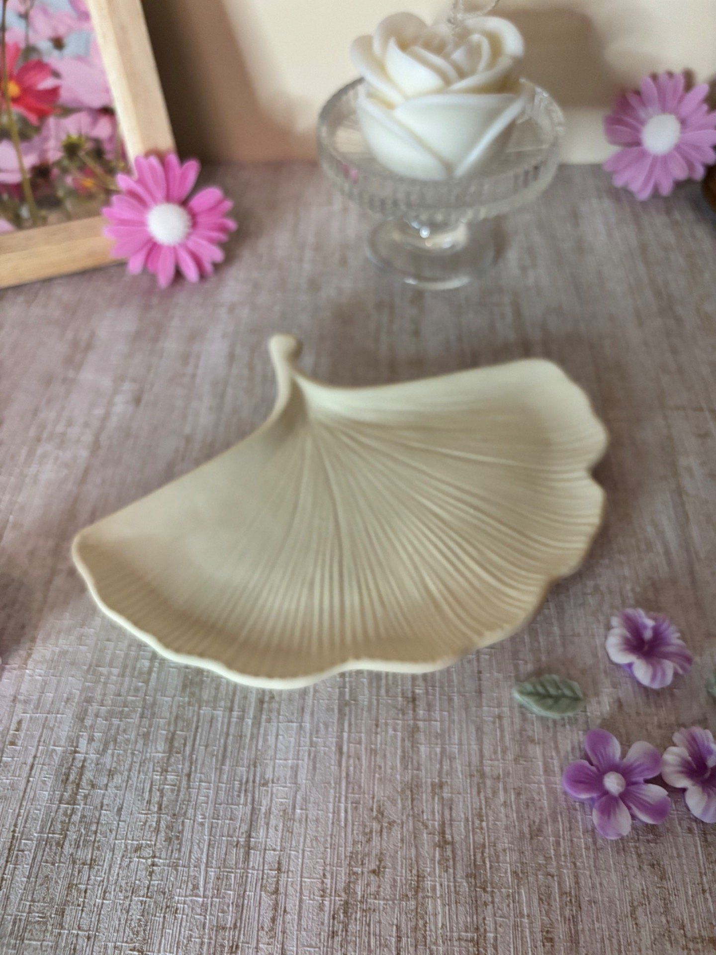 Plateau en forme de feuille de Ginkgo réalisé à la main en poudre de céramique.